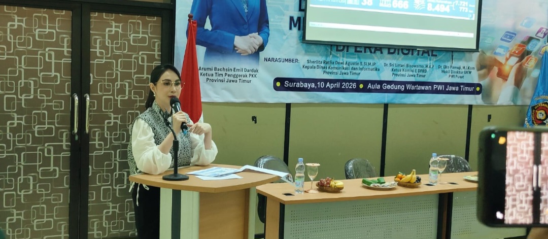 Surabaya-indonesiatodays.net Dalam rangka Hari Pers Nasional 2026 dan HUT PWI ke-80, Pengurus Ikatan Keluarga Wartawan Indonesia (IKWI) Provinsi Jawa Timur menggelar acara seminar “Seminar Peran Perempuan Dalam Mengakses dan Menyebarkan Informasi di Era Digital di Aula Kantor PWI Jawa Timur, Jalan Taman Apsari 15-17, Surabaya, Jumat (10/4) sekitar pukul 13.45.