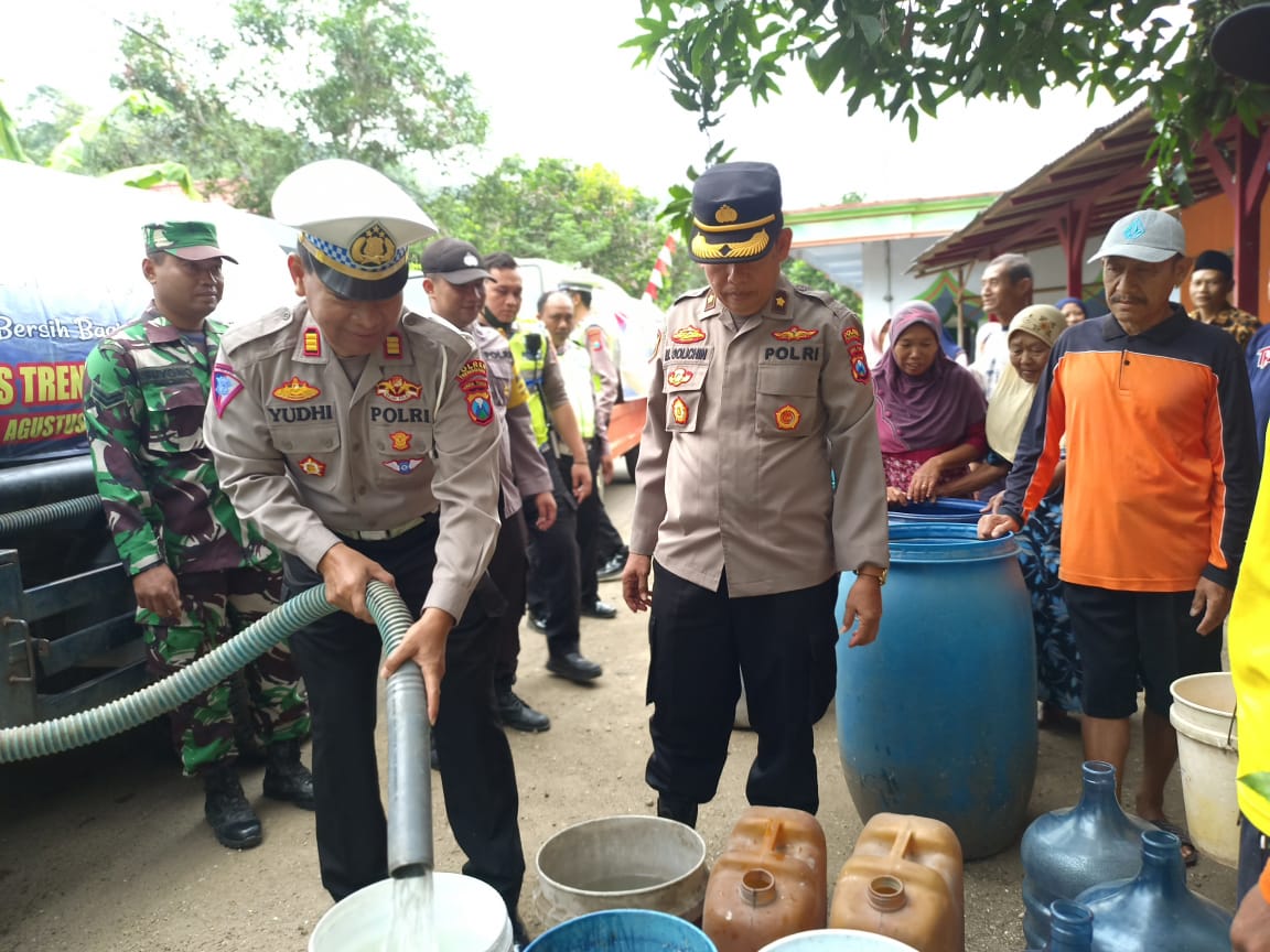 Trenggalek, indonesiatodays.net  – Kepolisian Resor Trenggalek turut berpartisipasi dalam acara bakti sosial pembagian air kepada masyarakat yang membutuhkan. Penyaluran air bersih tersebut merupakan rangkaian kegiatan bakti 28 tahun alumni Batalyon Patriatama Akpol 1995.