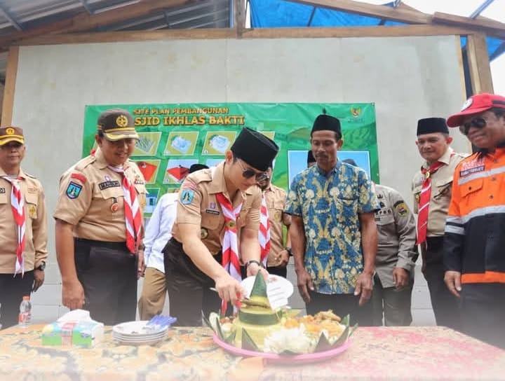 Trenggalek,Indonesiatodays.net Bupati Trenggalek, Mochamad Nur Arifin melakukan peletakan batu pertama Masjid Ikhlas Bakti di Hunian Sementara (Huntara) bagi warga terdampak tanah gerak di Desa Ngrandu, Kecamatan Suruh, Kabupaten Trenggalek.