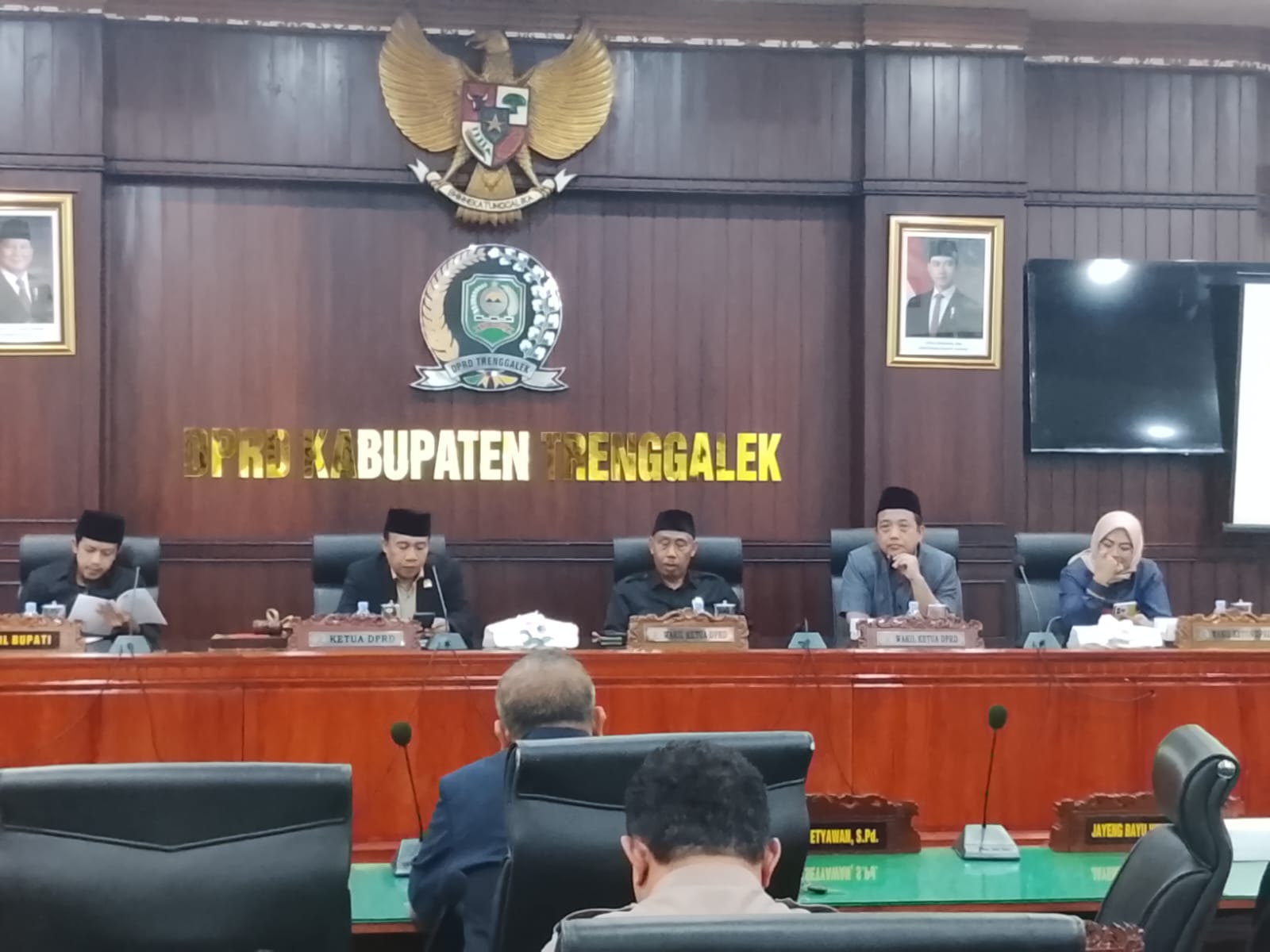 Dewan Perwakilan Rakyat Daerah (DPRD) Kabupaten Trenggalek menggelar rapat paripurna untuk membahas Rancangan Peraturan Daerah (Raperda) tentang Perubahan atas Perda Nomor 1 Tahun 2019 mengenai Pengelolaan Barang Milik Daerah, Senin, (10/11/2025).