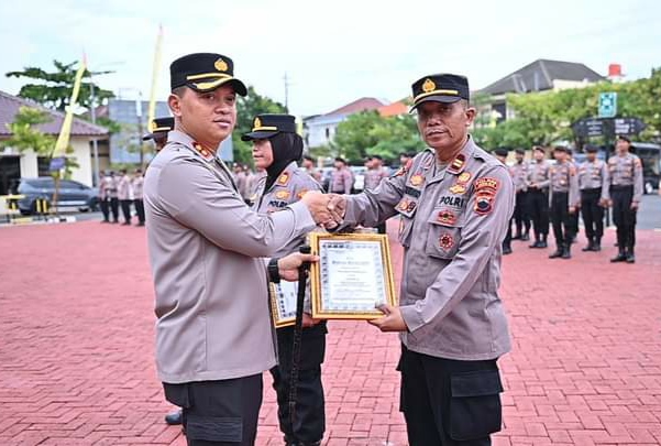 Usai pelaksanaan apel pagi, Kapolres Jepara AKBP Wahyu Nugroho Setyawan memberikan secara langsung piagam penghargaan kepada masing – masing Kapolsek yang berhasil meraih juara yang bertempat di Lapangan Apel Mapolres Jepara, Senin (3/7/2023).