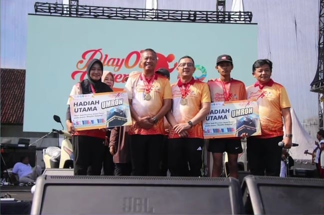 Tulungagung indonesiatodays.net. Dua peserta raih hadiah Umroh Gratis dalam acara “Jatim Play On Gayeng” yang diselenggarakan DPRD Jawa Timur bersama Pemerintah Provinsi Jawa Timur, bekerja sama dengan Pemerintah Kabupaten Tulungagung yang dilaksanakan di GOR Lembupeteng Tulungagung, pada Minggu (23/11/2025) pagi.