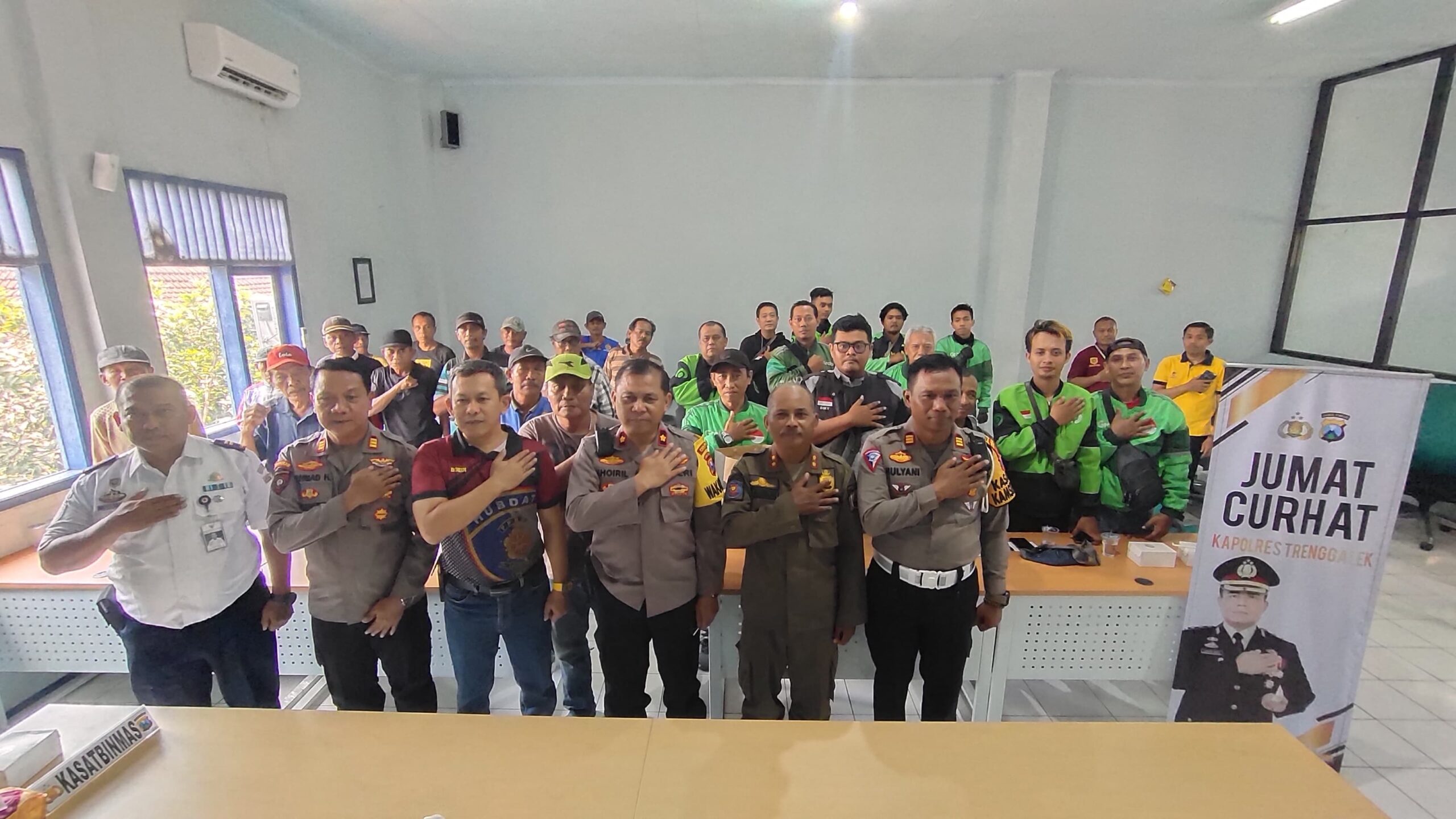 Jajaran Polres Trenggalek saat agenda Jumat curhat bersama komunitas ojol