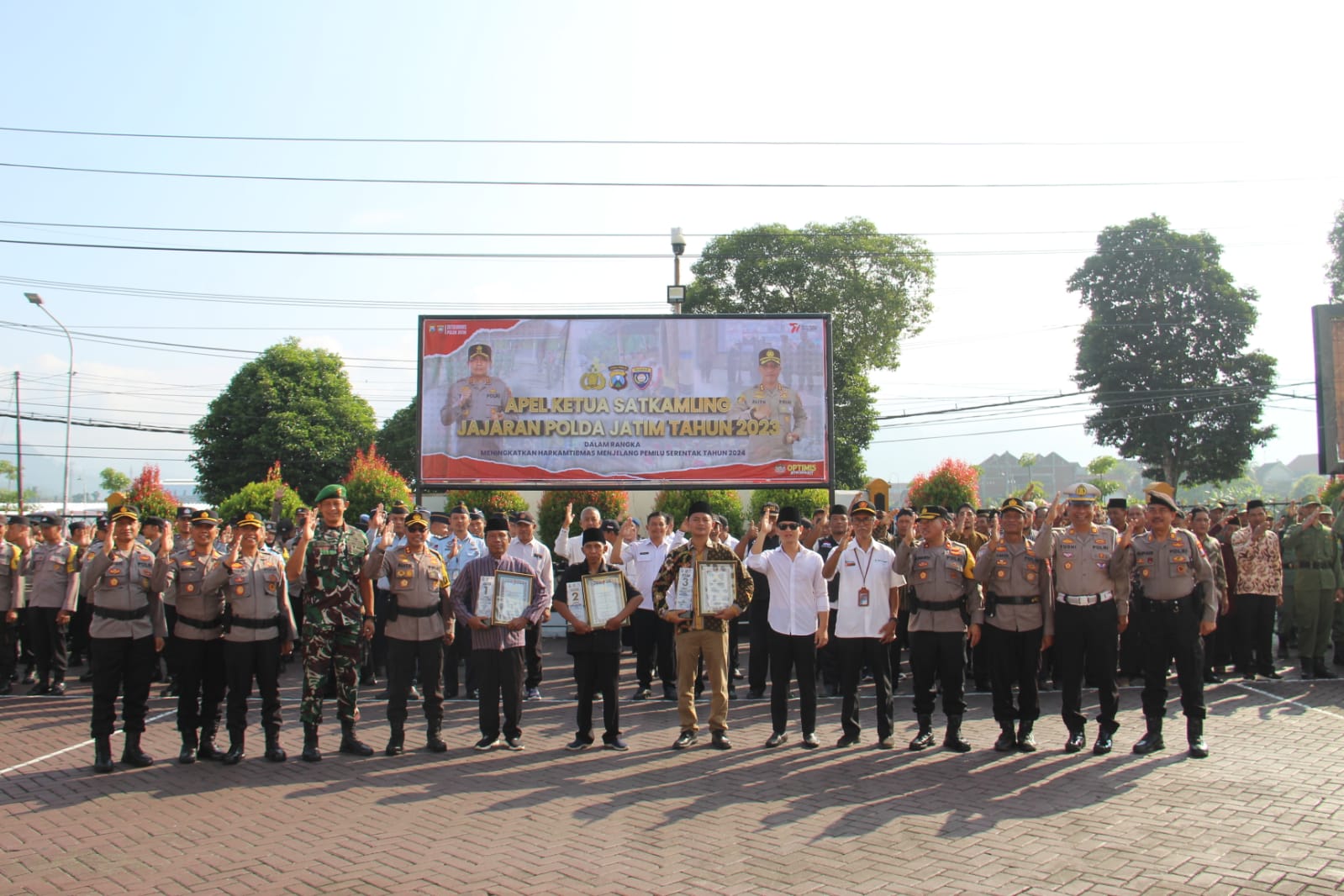 Trenggalek, indonesiatodays.net – Dalam rangka menjaga keamanan dan ketertiban di tingkat lingkungan, Apel Kasatkamling di Polres Trenggalek menjadi momen penting yang dihadiri oleh Dandim 0806/Trenggalek Letkol Kav Peddy Adi Prasetyo, S.Sos, dan Bupati Trenggalek Moch. Nur Arifin. Acara ini dihadiri oleh berbagai peserta, termasuk peleton Babinsa jajaran Kodim 0806/Trenggalek, Bhabinkamtibmas, Rutan kelas IIB Trenggalek, Kepala Desa, Kasatkamling, dan Linmas, Rabu (21/6/2023). Selain itu, Kapolres Trenggalek AKBP Alith memberikan penghargaan kepada tiga Satkamling yang berprestasi dalam lomba yang digelar oleh Polres Trenggalek sejak bulan Mei 2023.