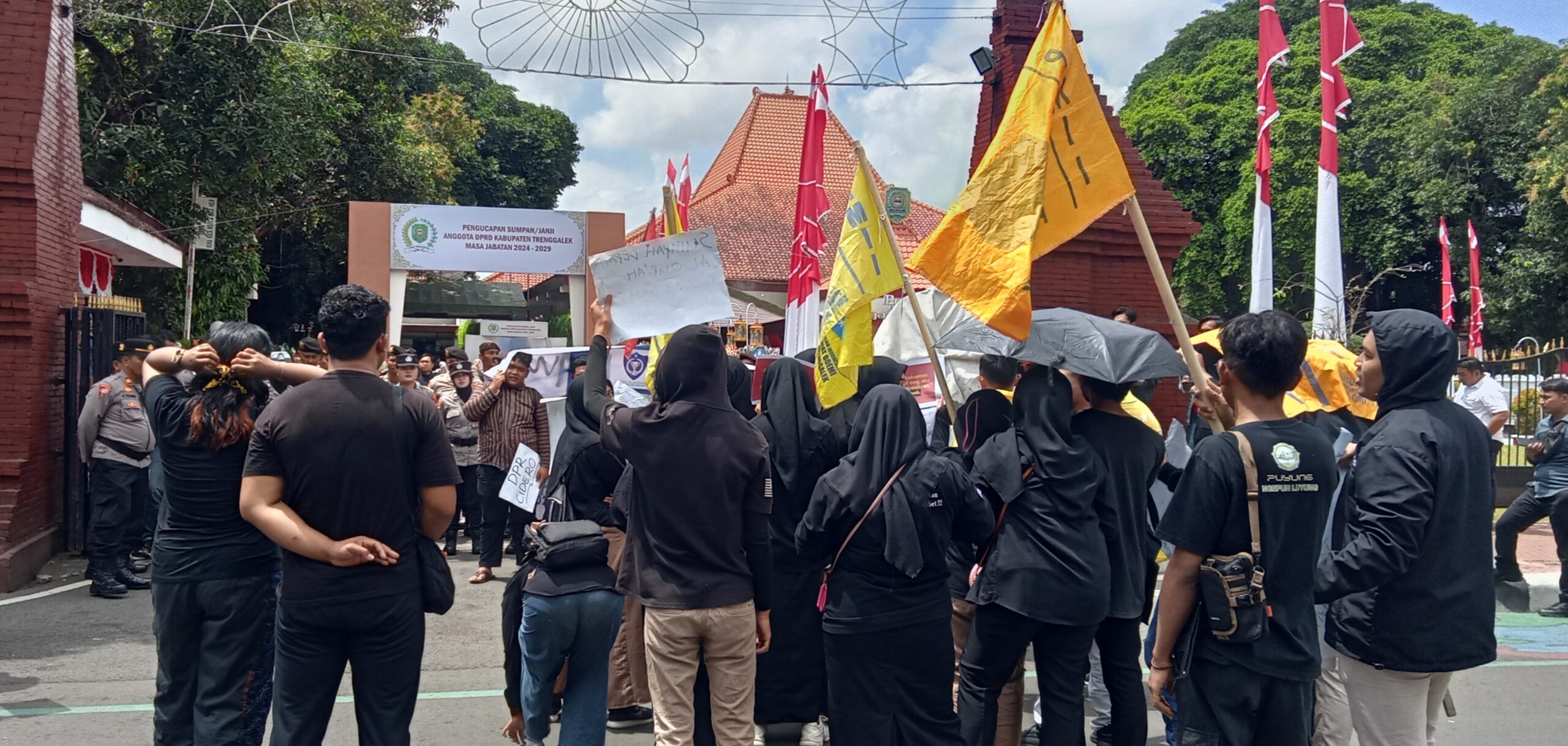 TRENGGALEK,Indonesiatodays.net– Pelantikan Dewan Perwakilan Rakyat Daerah (DPRD) Trenggalek periode 2024-2029 diwarnai dengan aksi demonstrasi oleh Aliansi Mahasiswa Trenggalek , Senin (26/08/2024).