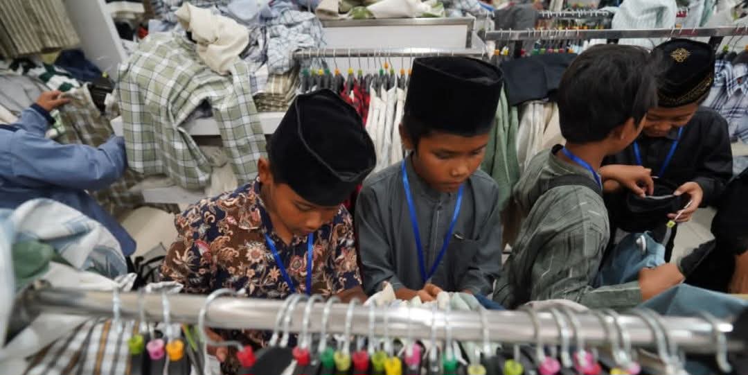 Sebanyak 200 anak yatim dari 26 kecamatan se-Kabupaten Kediri diajak memilih langsung pakaian yang mereka sukai di Kediri Town Square, Kamis (12/3/2026). Kegiatan ini menghadirkan senyum bahagia di wajah anak-anak yang bisa merasakan pengalaman memilih baju Lebaran sendiri.