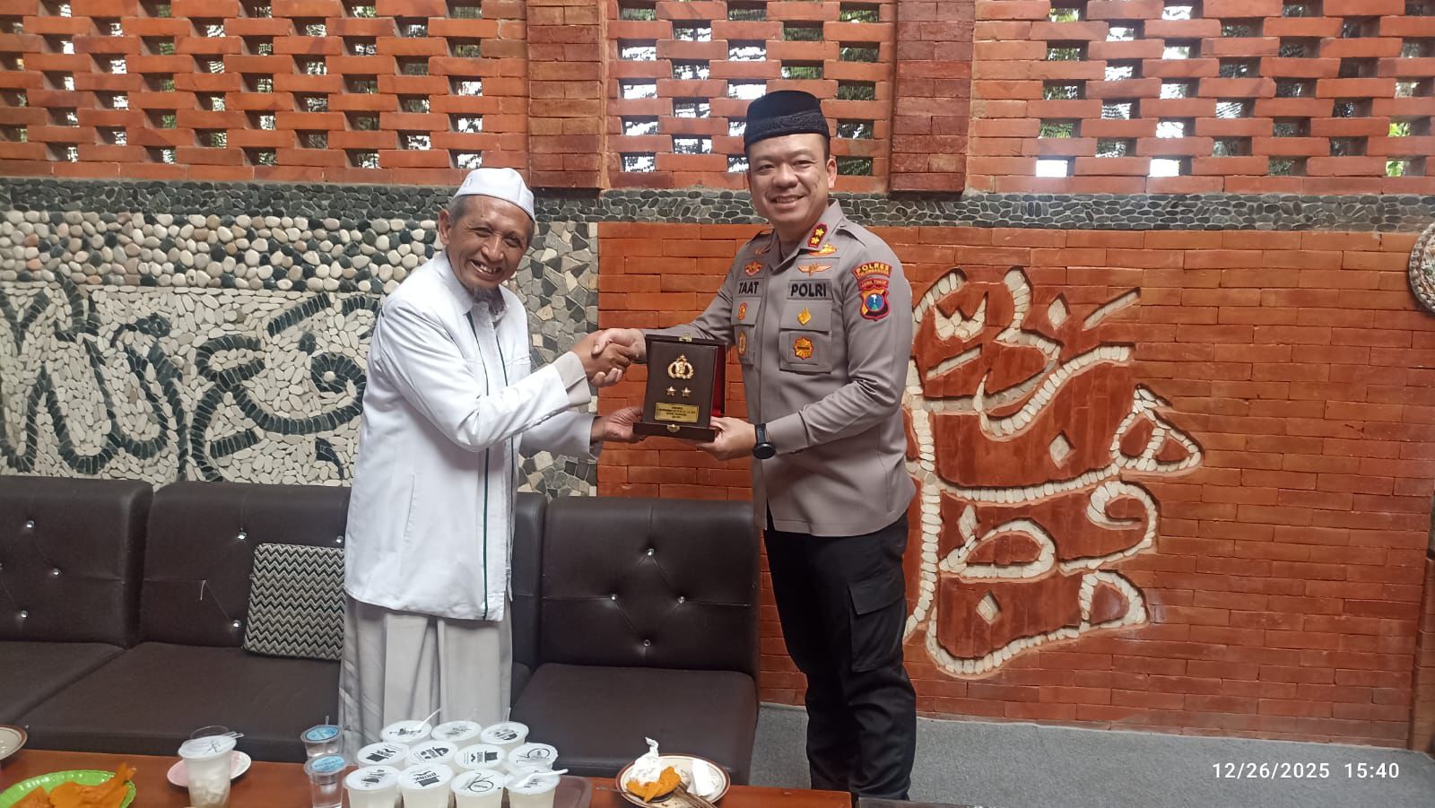 Rombongan AKBP Taat hadir didampingi Kanit Intel dan Kapolsek Kedungwaru. Suasana silaturahim berlangsung gayeng, penuh keakraban, diselingi canda ringan, mencerminkan eratnya hubungan antara kepolisian, pesantren, dan masyarakat.