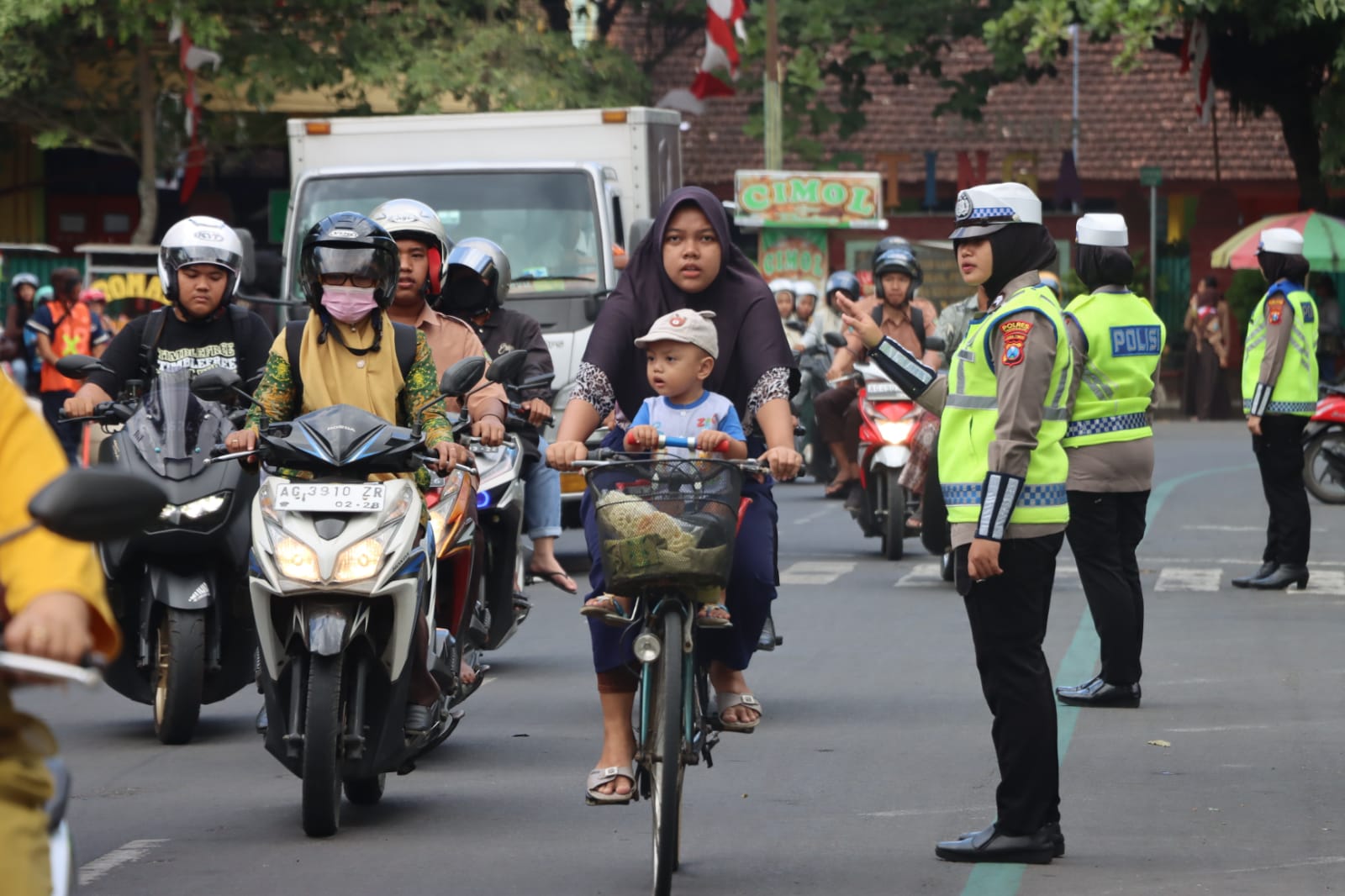 Patroli Srikandi Polres Trenggalek Amankan Ibadah Shalat Jumat