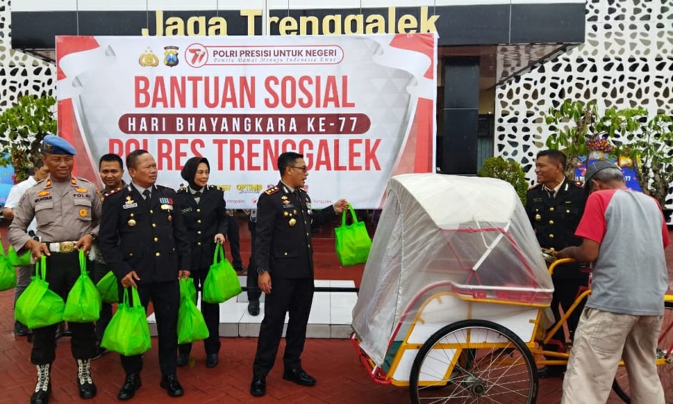 Peringatan Hari Bhayangkara ke – 77, Polres Trenggalek Serahkan Bantuan Sosial