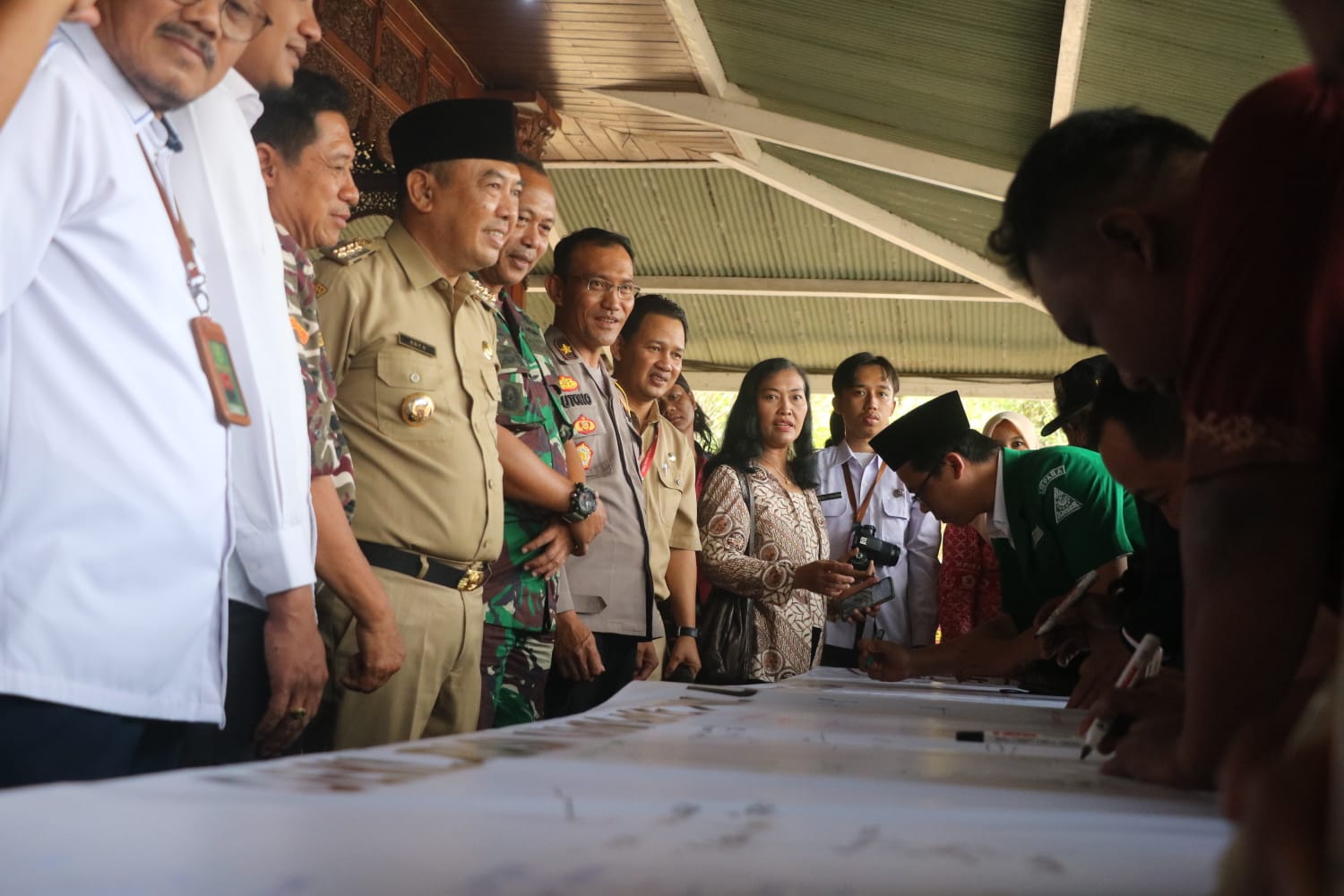 “Buat terasi dijemur di pantai, terhalang pagar ikannya buntal. Deklarasi kampanye pemilu damai, jangan sekedar seremonial,” kata Pj. Bupati, disambut tepuk tangan riuh peserta deklarasi.