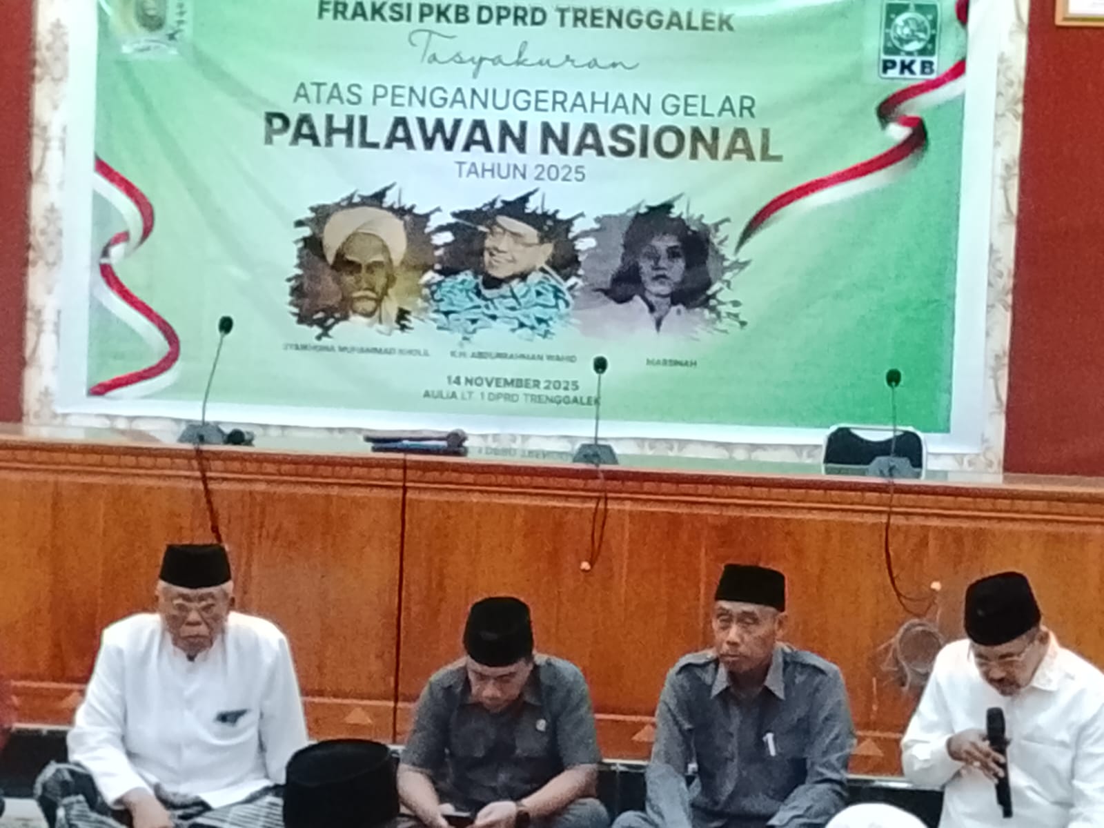 Trenggalek, indonesiatodays.net. Ketua DPC PKB Trenggalek sekaligus Ketua Fraksi PKB DPRD setempat, Sukarodin, menggelar acara doa bersama untuk mengenang jasa seluruh Pahlawan Nasional. Acara yang berlangsung di aula gedung DPRD Kabupaten Trenggalek pada Jumat (14/11/2025) ini bertujuan untuk menghormati dan meneladani nilai-nilai perjuangan para pahlawan.