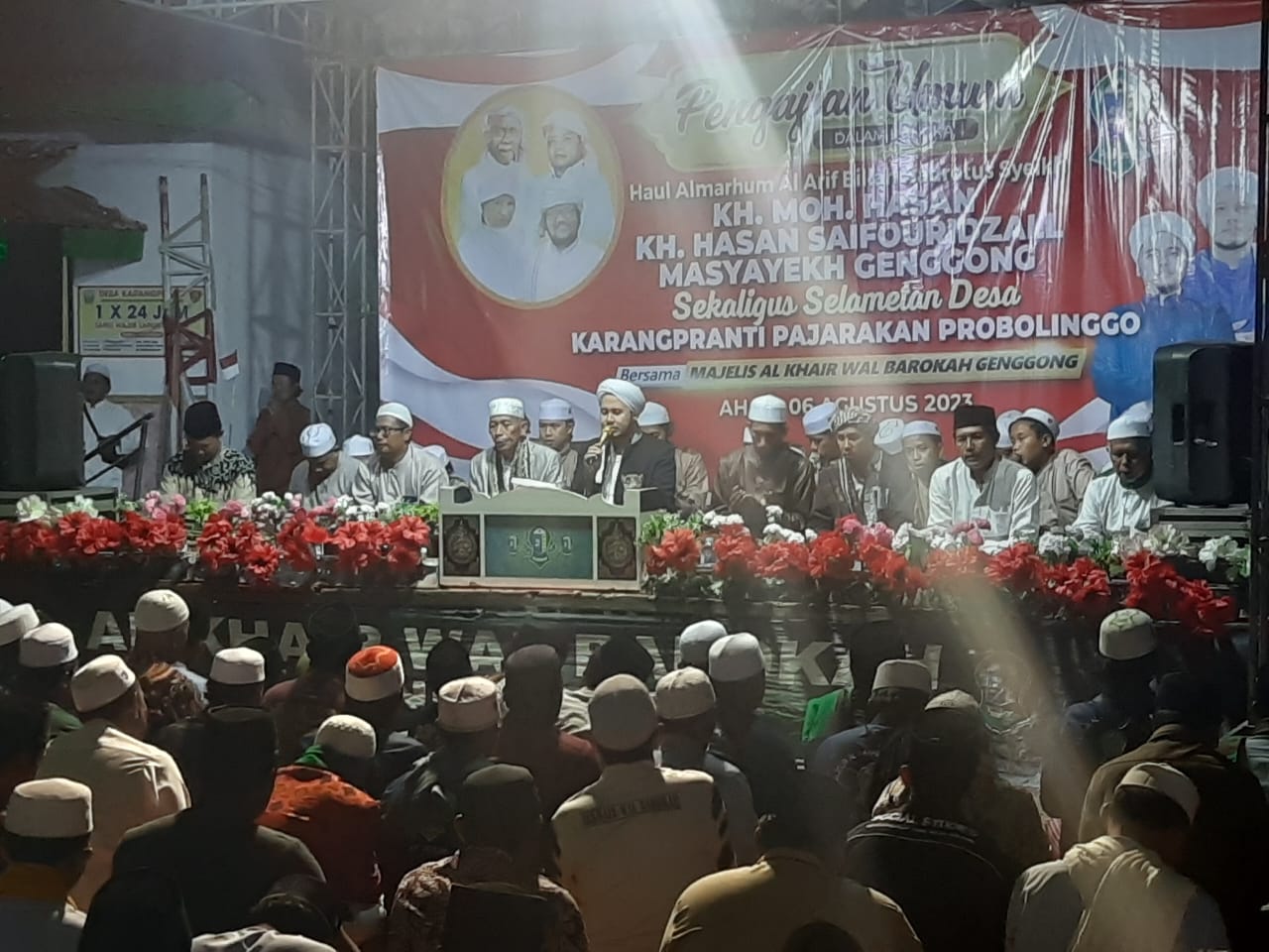 Probolinggo, indonesiatodays.net – Pengajian umum dalam rangka Haul almarhum Al Arif-Billah Hadrotus Syeikh KH. Moh Hasan, KH. Hasan Saifouridzall Masyayekh Genggong sekaligus Selamatan Desa digelar Pemdes desa Karangpranti , kegiatan ini berlangsung di halaman balai desa Karangpranti kecamatan Pajarakan Kabupaten Probolinggo. Minggu, 06/08/23.